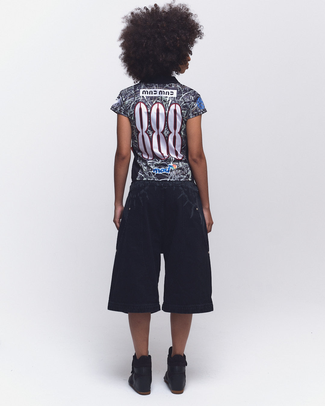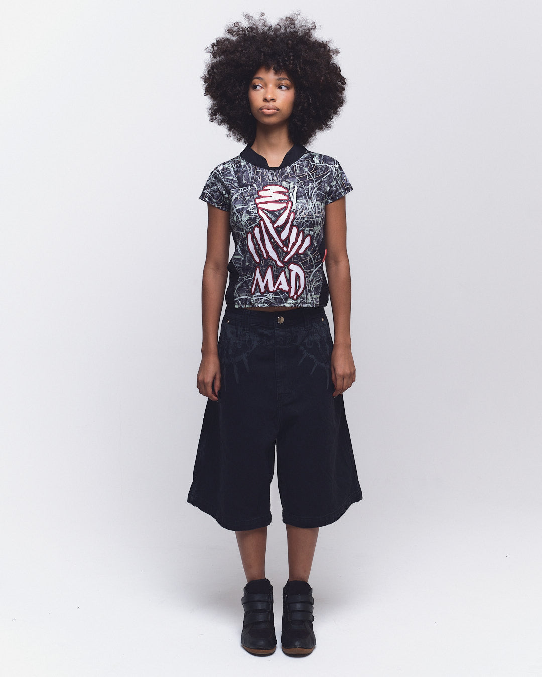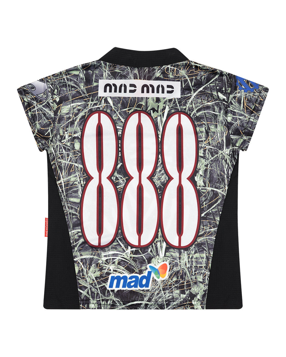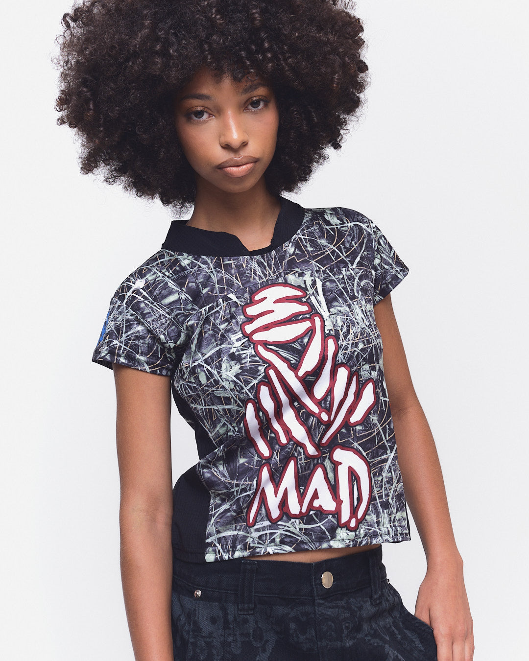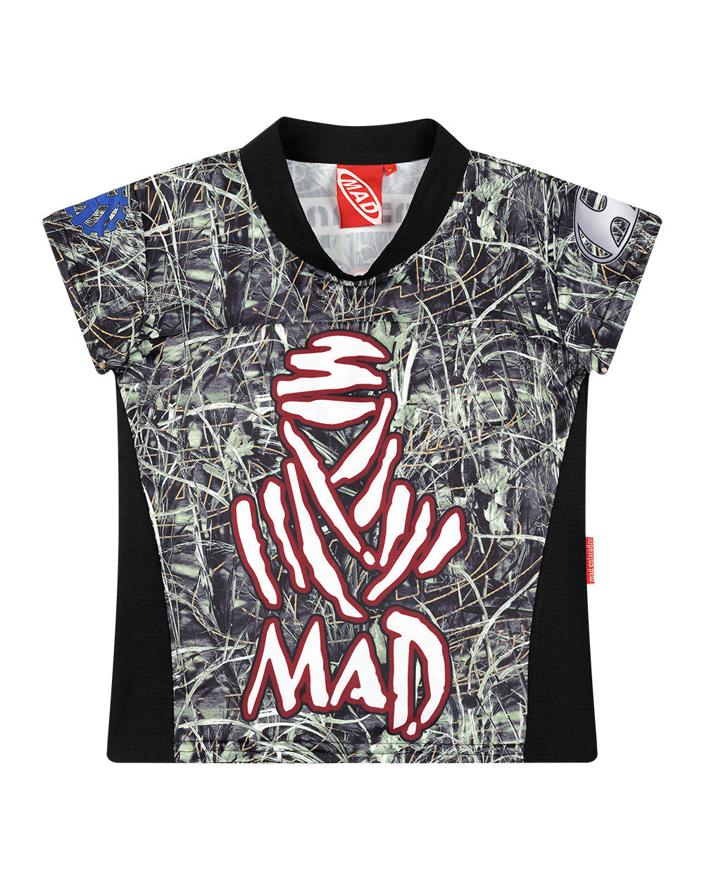 A Baby Jersey Rali recebe uma gola colarinho e recortes laterais. Estampas em sublimação.