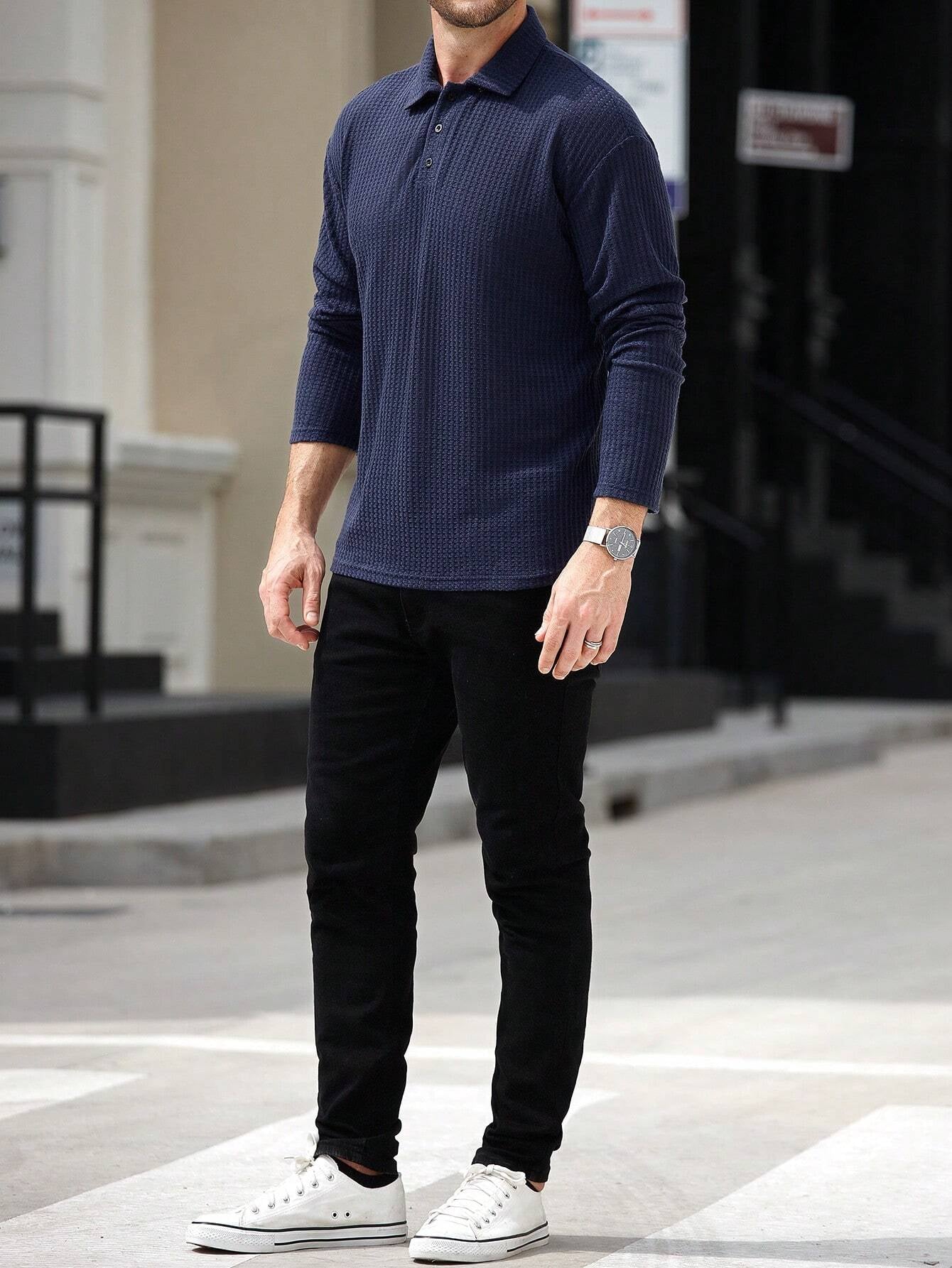 Camisa CasualCool Polo de Manga Longa com Textura de Waffle – Estilo e Conforto em uma Peça Atemporal