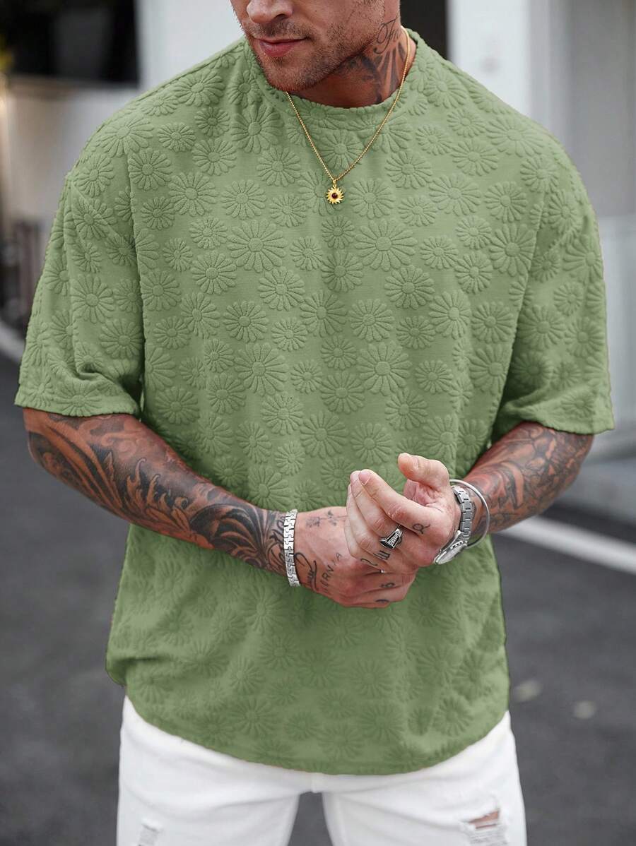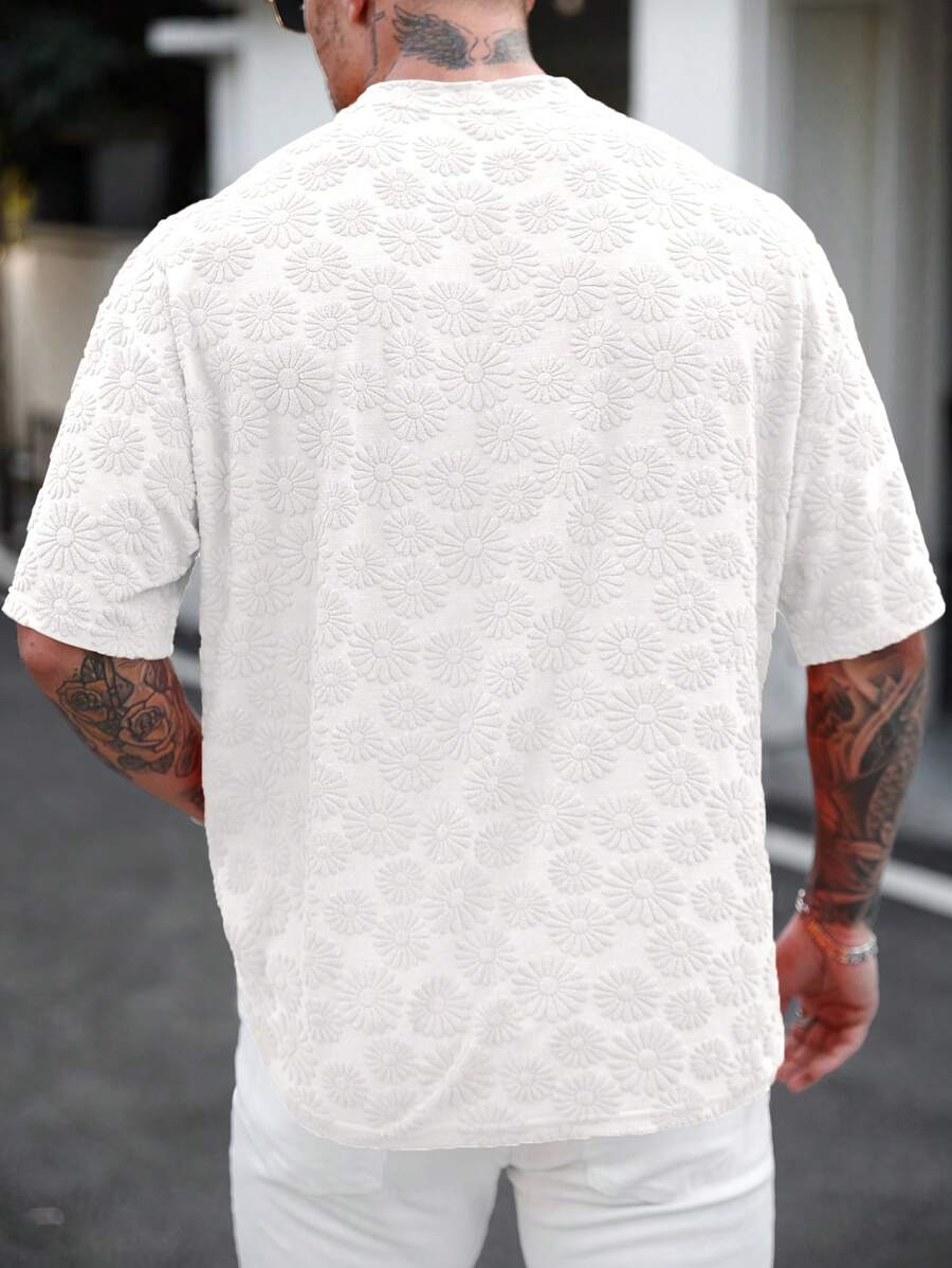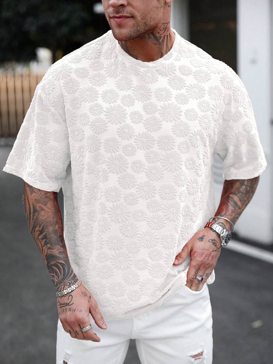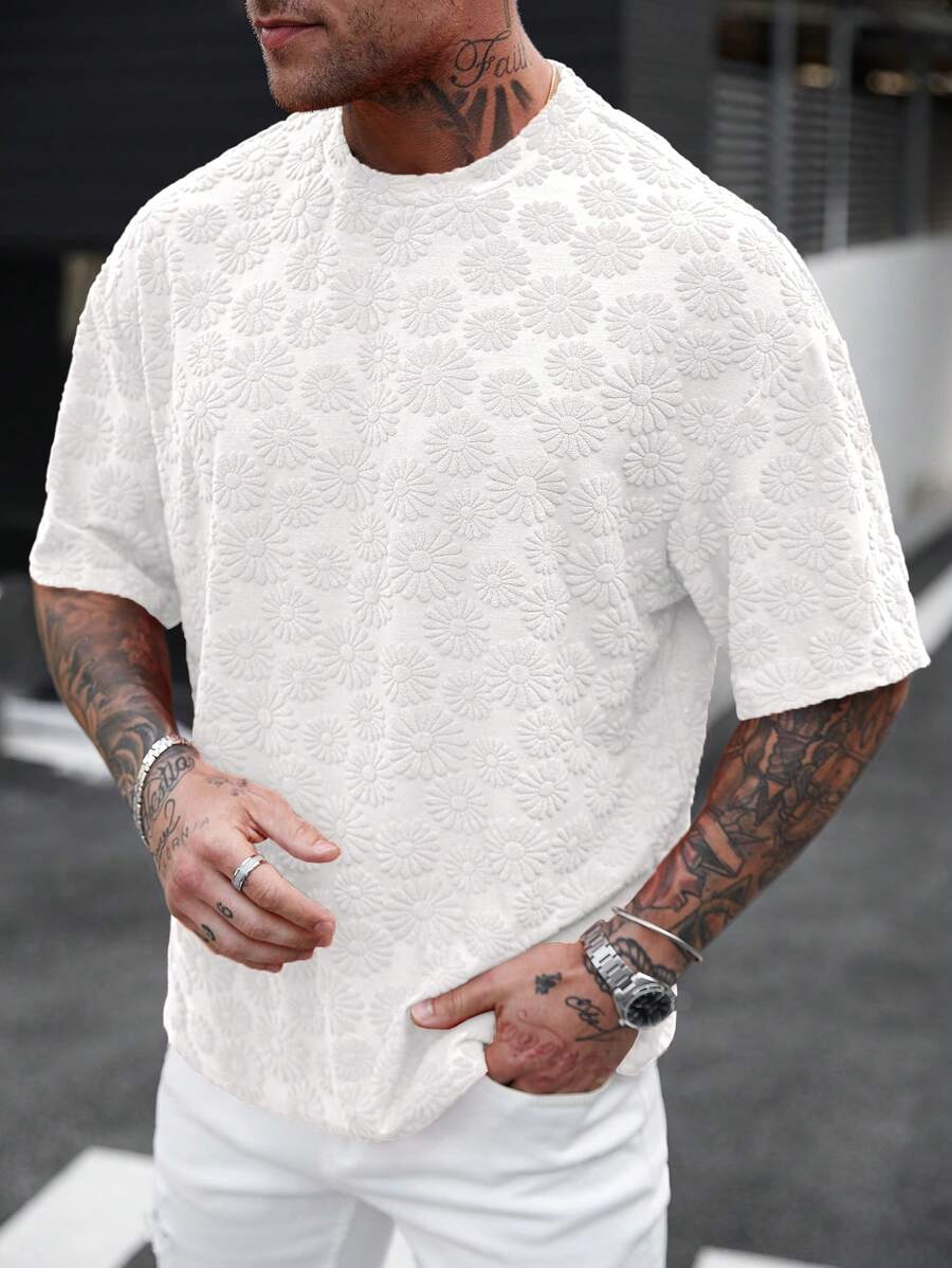 A Camiseta Bloom Relief redefine o conceito de peça básica para o verão. O grande destaque é o seu tecido com textura em jacquard de margaridas em alto relevo, que traz uma estética artesanal e sofisticada para o visual. Com um corte voltado para o estilo Relaxed Fit, ela oferece o equilíbrio perfeito entre o despojado e o elegante, sendo a peça chave para o seu Réveillon ou eventos à beira-mar.