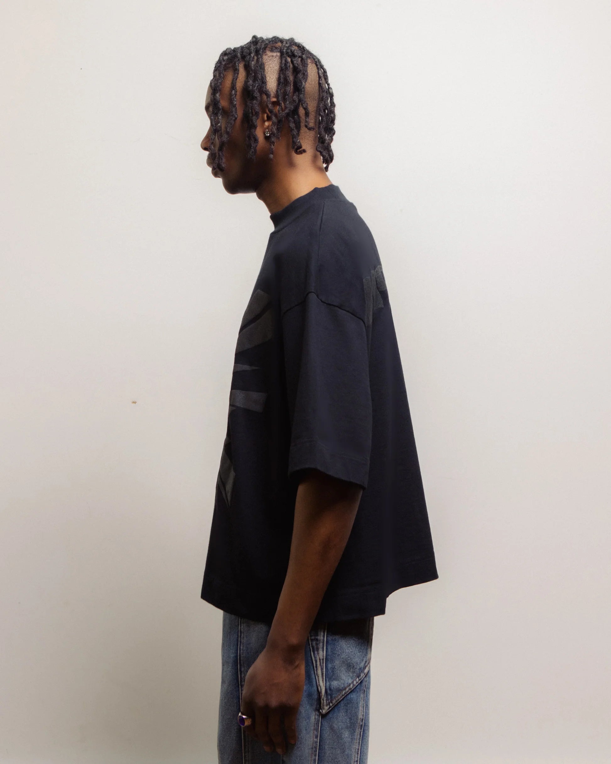 Produzida em malha de alta gramatura, com toque macio e caimento estruturado, a peça entrega um visual urbano e refinado, sem perder o conforto. O estilo segue a linha streetwear de luxo: modelagem mais solta, acabamento reforçado na gola e costuras bem definidas, ideal para composições modernas com jeans, cargo, wide leg ou sobreposições.