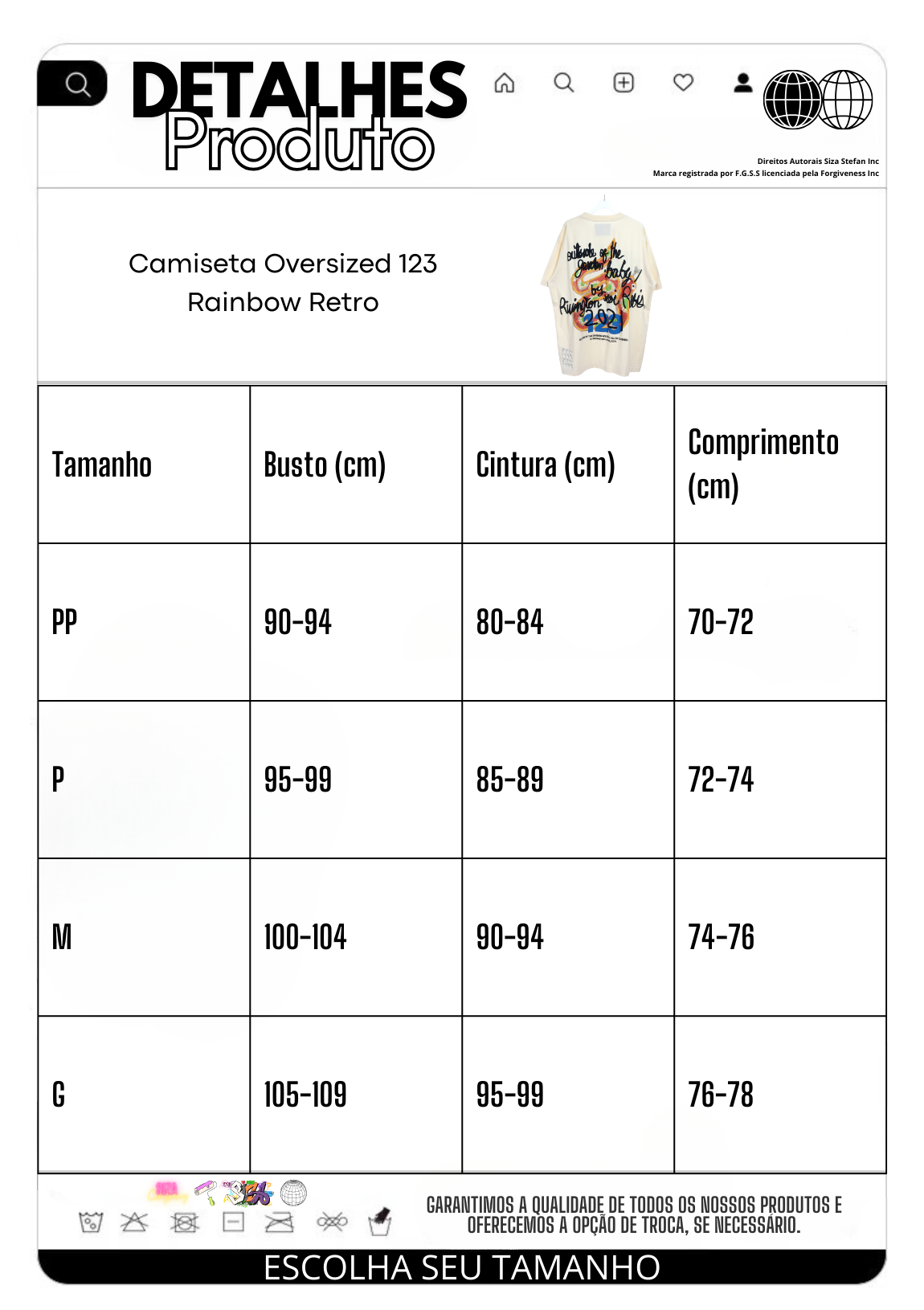 👕 Apresentando a Camiseta Oversized 123 Rainbow Retro, uma peça exclusiva para colecionadores e entusiastas de moda que buscam um estilo vintage com uma estampa diferenciada e rara. Esta camiseta oversized combina um design retro colorido com detalhes que capturam a essência nostálgica das décadas passadas.