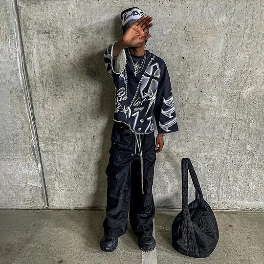 Produzida em algodão premium de alta gramatura, oferece toque macio, resistência e caimento estruturado. A modelagem ampla garante liberdade total de movimento, com ombros caídos e comprimento alongado — ideal para quem busca autenticidade com presença visual.