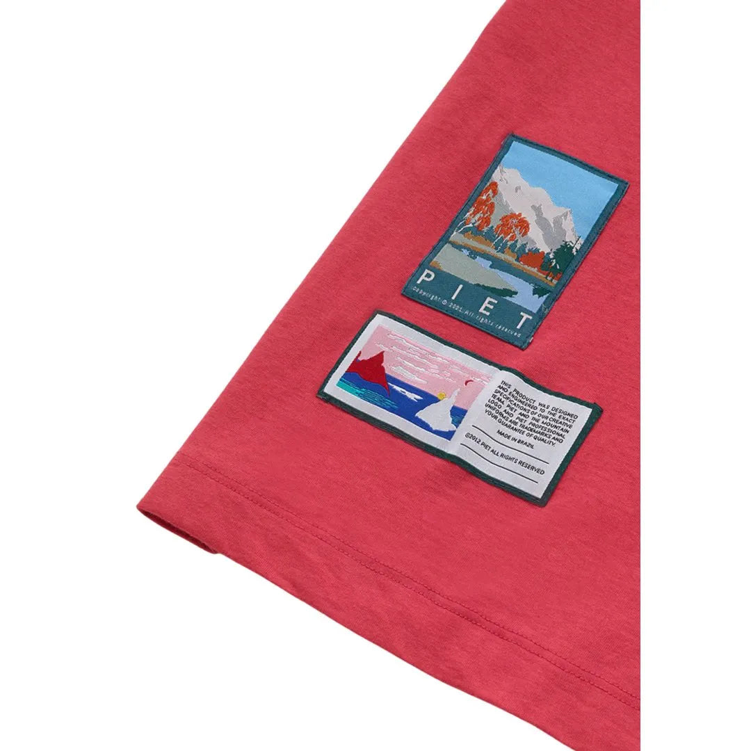 Camiseta Piet é fabricada em malha premium 100% algodão com alta gramatura de 270 GSM. Com modelagem relaxed e gola de 2,5 cm, a peça exibe um visual vintage, com desbotamento leve e pequenos puídos na gola, mangas e barras. A peça apresenta taxas piramidais aplicadas na barra e nas mangas, além de um logo na parte traseira.