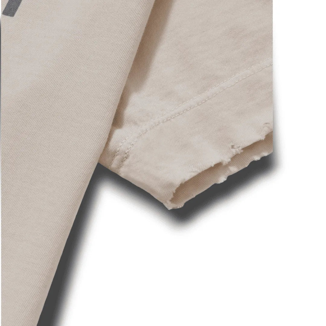 Camiseta Piet é fabricada em malha premium 100% algodão com alta gramatura de 270 GSM. Com modelagem relaxed e gola de 2,5 cm, a peça exibe um visual vintage, com desbotamento leve e pequenos puídos na gola, mangas e barras. A peça apresenta taxas piramidais aplicadas na barra e nas mangas, além de um logo na parte traseira.