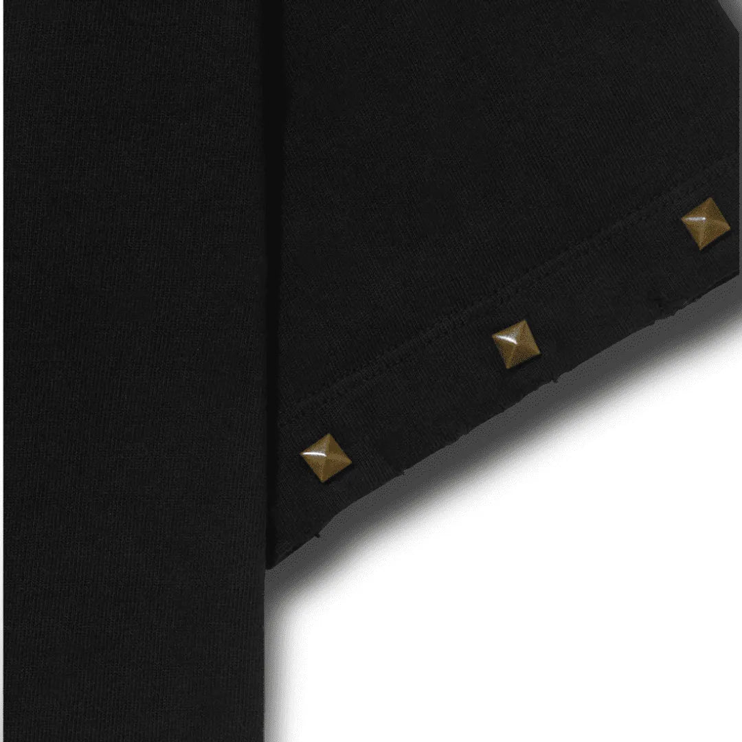 Camiseta Piet é fabricada em malha premium 100% algodão com alta gramatura de 270 GSM. Com modelagem relaxed e gola de 2,5 cm, a peça exibe um visual vintage, com desbotamento leve e pequenos puídos na gola, mangas e barras. A peça apresenta taxas piramidais aplicadas na barra e nas mangas, além de um logo na parte traseira.