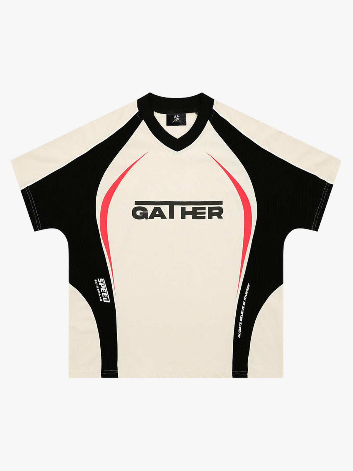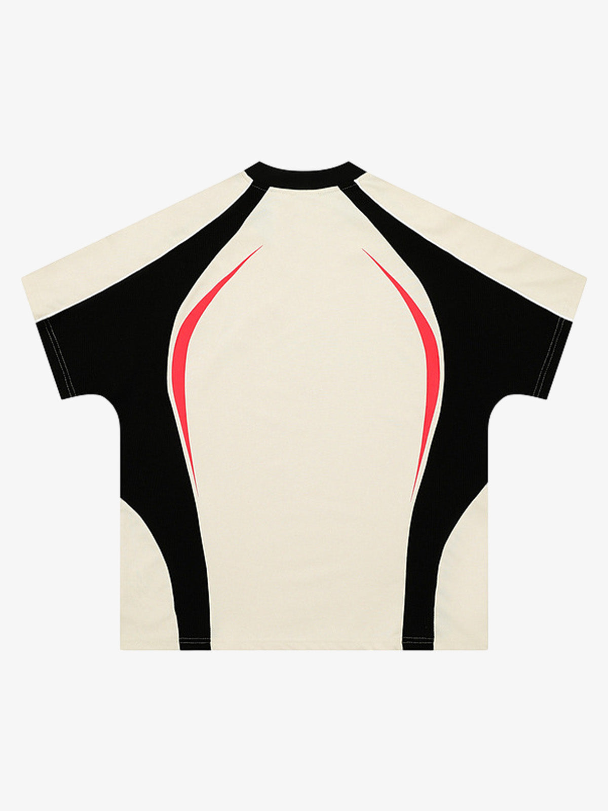 Contrast Color Stitching V-neck Short-sleeved T-shirt