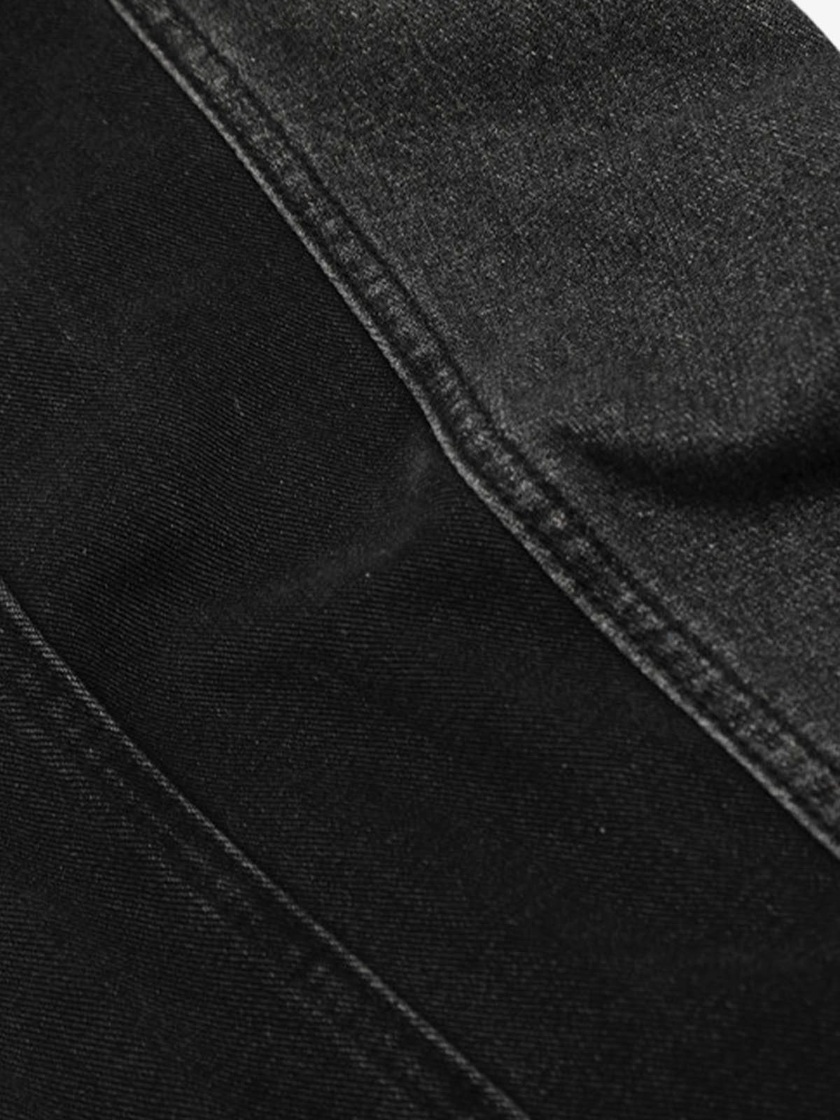 Faux Two-piece Plaid Detachable Scimitar Jeans - 2435