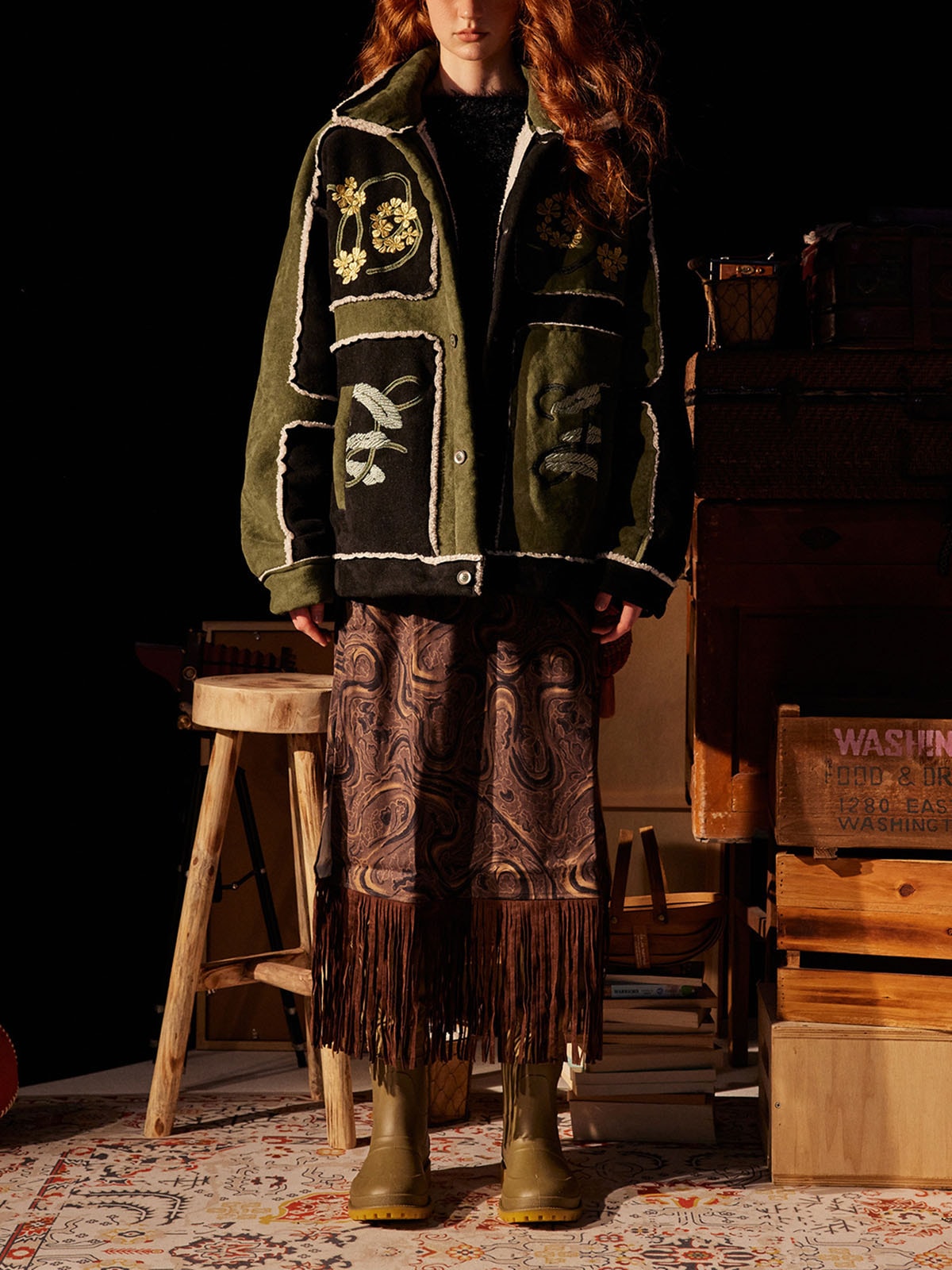 A Jaqueta Floral Suede Fleece une a elegância atemporal do suede com o conforto aconchegante do fleece, em uma estampa floral vintage que remete a um estilo retrô e sofisticado. A peça tem um design clássico e corte oversized, entregando um caimento imponente e super estiloso, ideal para criar camadas em looks urbanos. O acabamento interno em fleece garante isolamento térmico e um toque macio, perfeito para as temperaturas mais frias.