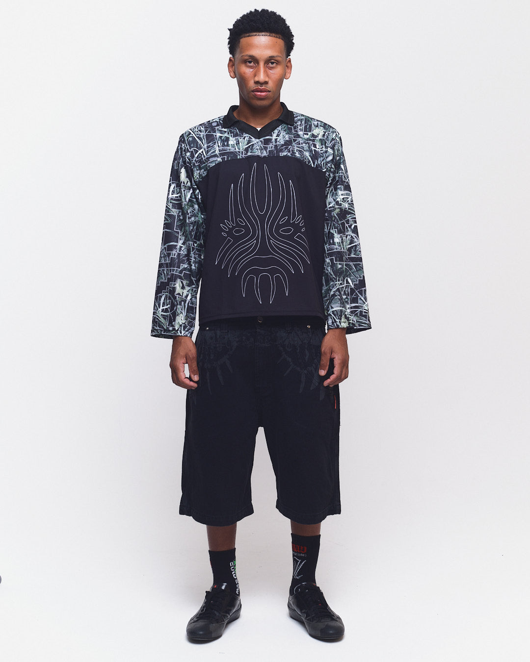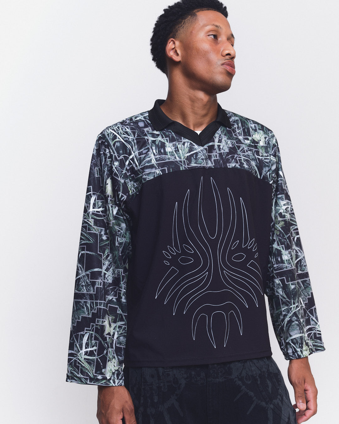 A jersey Mister M é o novo modelo de manga longa da Mad, com modelagem ampla, gola 'v' e detalhe interno, a peça é estampada em sublimação.