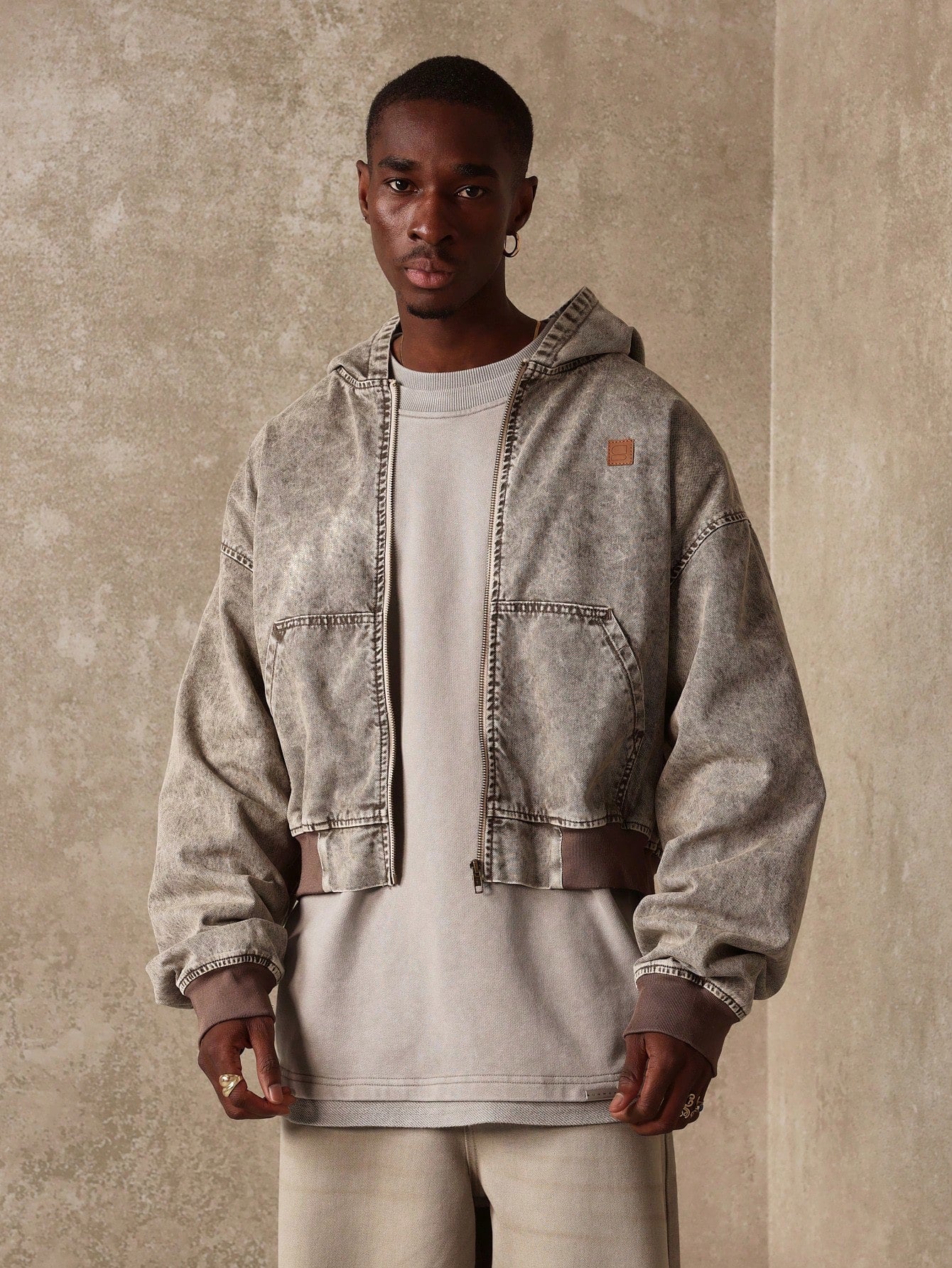 Modelagem cropped masculina, unissex, com caimento solto na cintura
