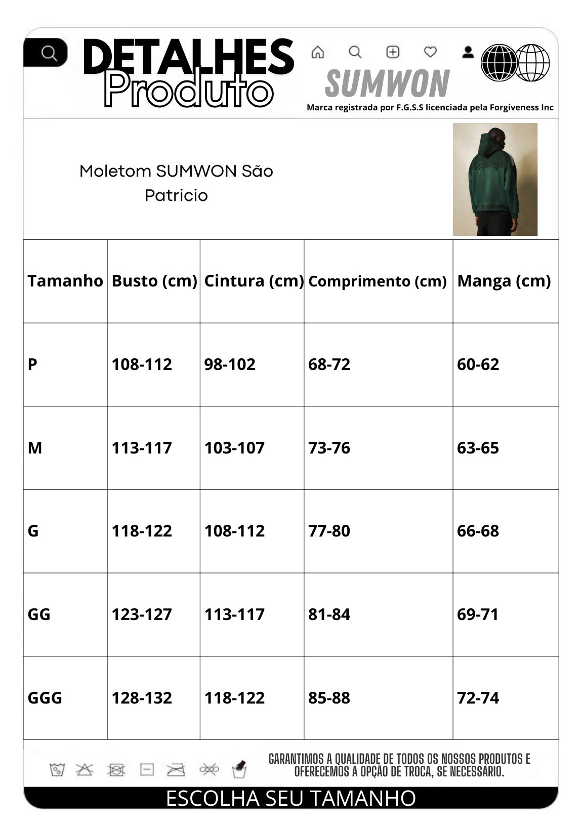 Com o Moletom SUMWON São Patrício, você mistura tradição e modernidade de maneira impecável. Garanta o seu e celebre com estilo, mas lembre-se: esta edição é limitada!