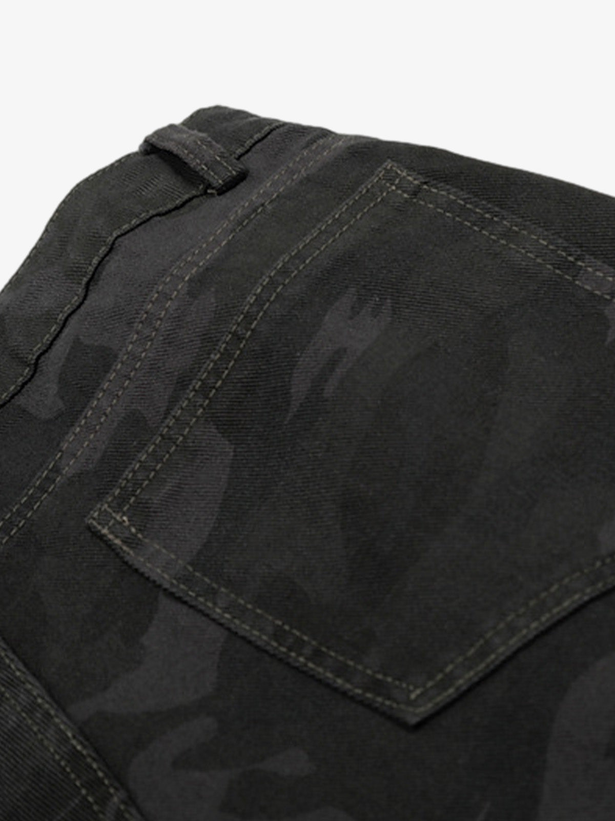 Tecido em denim resistente com estampa de camuflagem vintage.