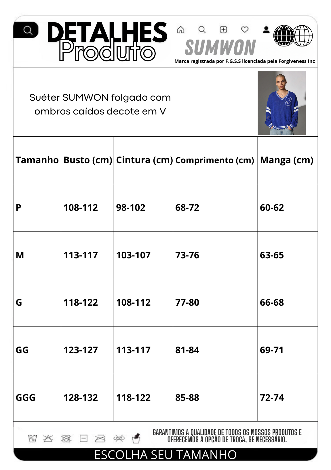 Ombros caídos e decote em V, reforçando a vibe streetwear.