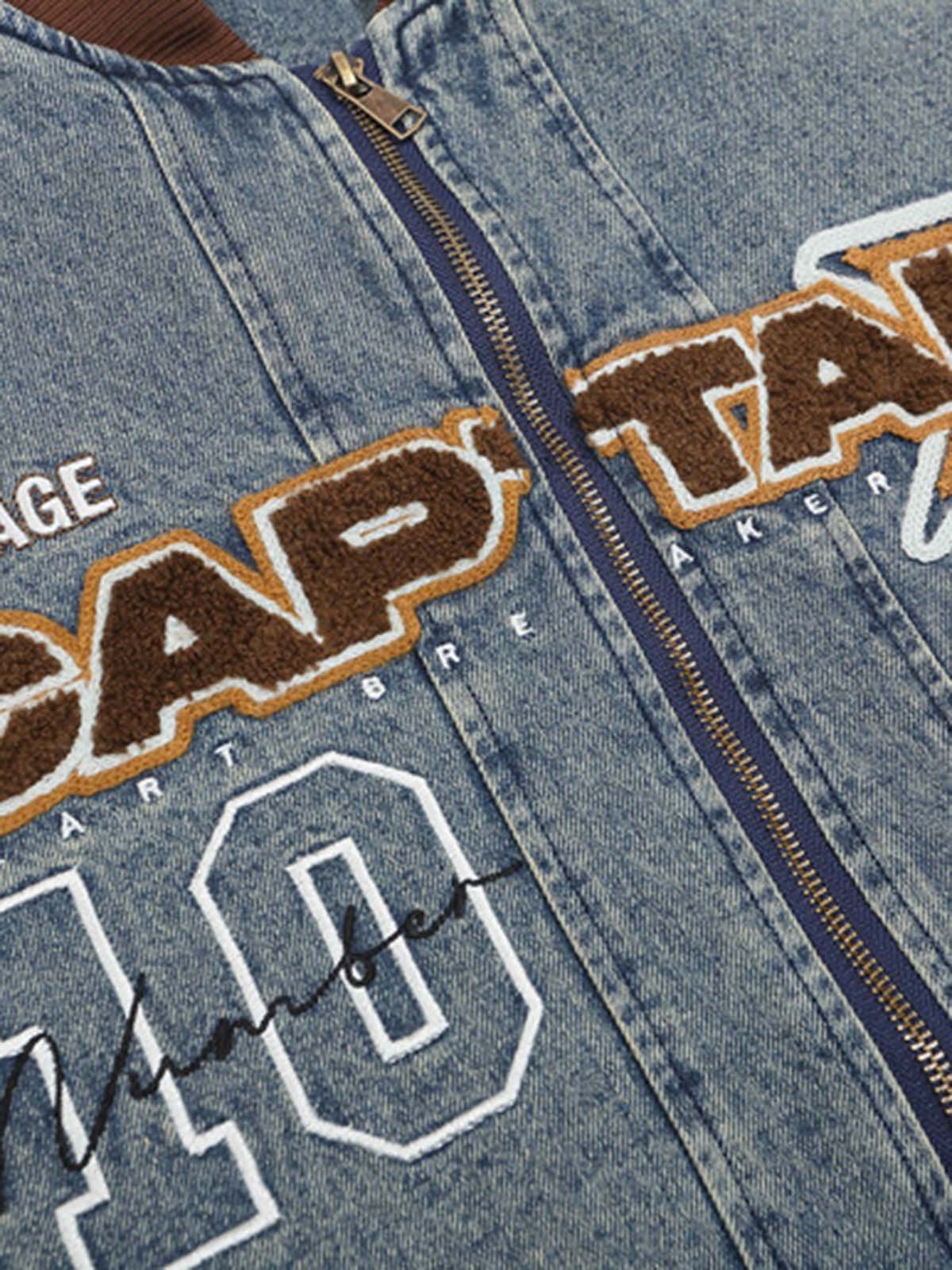 Thesupermade Alphabet Patch Embroidered Quilted Denim Bomber Jacket - 2311