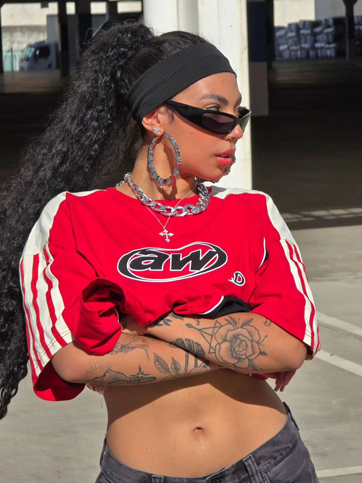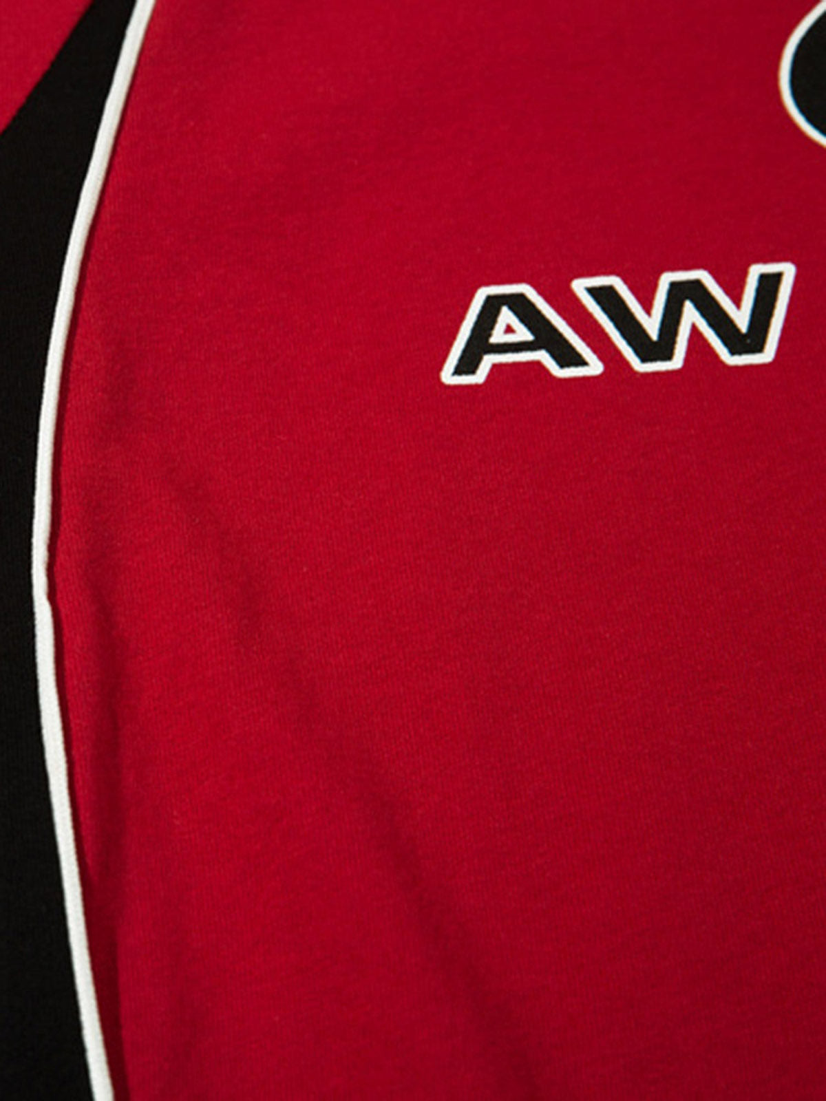 • Detail Features: Short Sleeves, Crew Neck, Contrast Stripes, Graphic Print