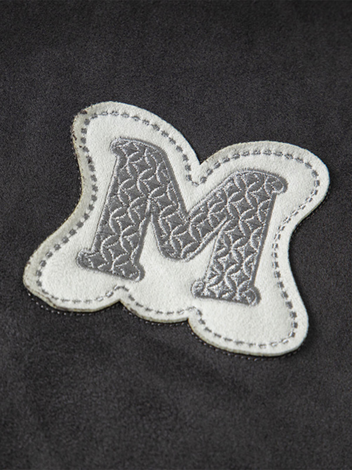 • Design Elements: Distinctive embroidered letter patch, colorful decorative buttons on the collar